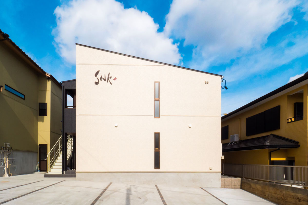 ベージュを基調とした明るい外観は、アパート名をペイントすることでアクセントを付けた。外階段の手すりをアイアンデザインとすることで開放的なデザインとなっている。共用廊下の天井にナチュラルカラーの木目調を使用し、暖かみのある空間とした。