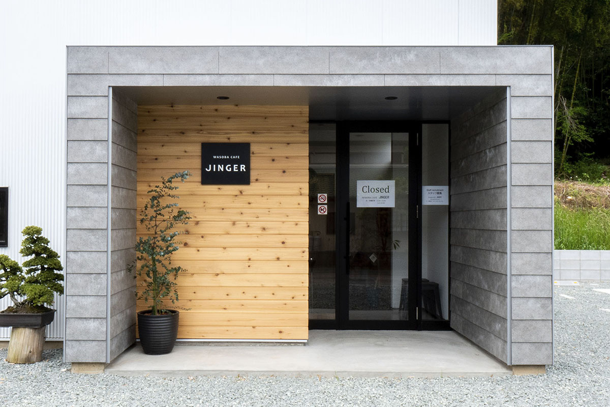 窓から入る陽の光を浴びながらお茶を楽しめるように、テーブルの高さに合わせ窓の大きさ・高さを計算。暖かみのある空間となっている。カウンター席・2人掛けテーブルを多く配置することで、少人数で落ち着いた時間を楽しみたい方には嬉しい空間となる。コンクリートや土間をそのまま使用して無骨な印象を持たせながらも、暖かみのある木材を随所に使用し、ほっとするようなお店を目指した。